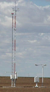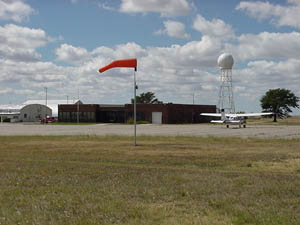 Lighted Wind Sock, Weather Modification Radar. East Side of Terminal Building & Tie Down Area
